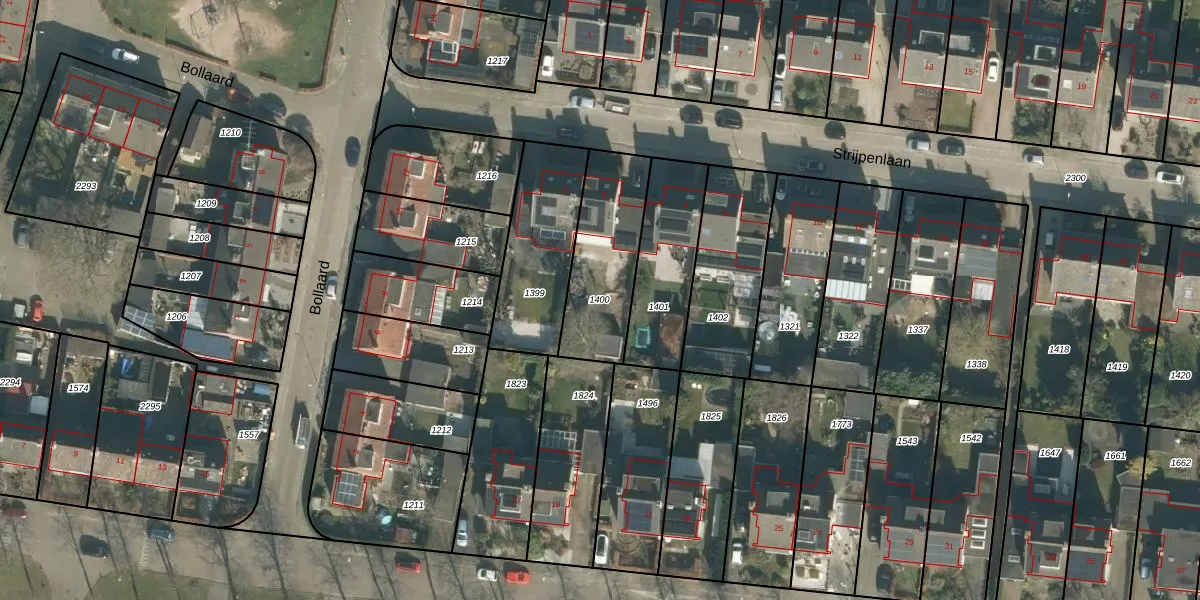 Gebruik de zoekbalk of klik op een perceel om informatie over het perceel te bekijken.