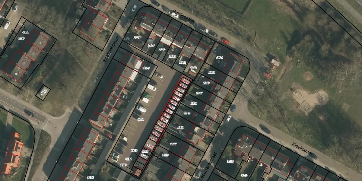Gebruik de zoekbalk of klik op een perceel om informatie over het perceel te bekijken.