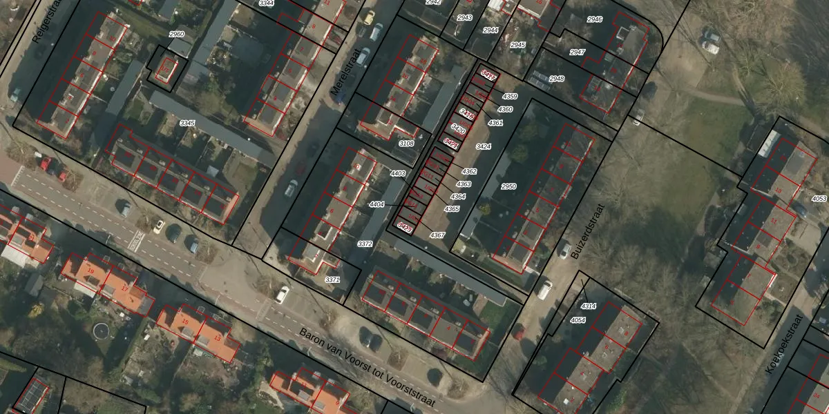 Gebruik de zoekbalk of klik op een perceel om informatie over het perceel te bekijken.