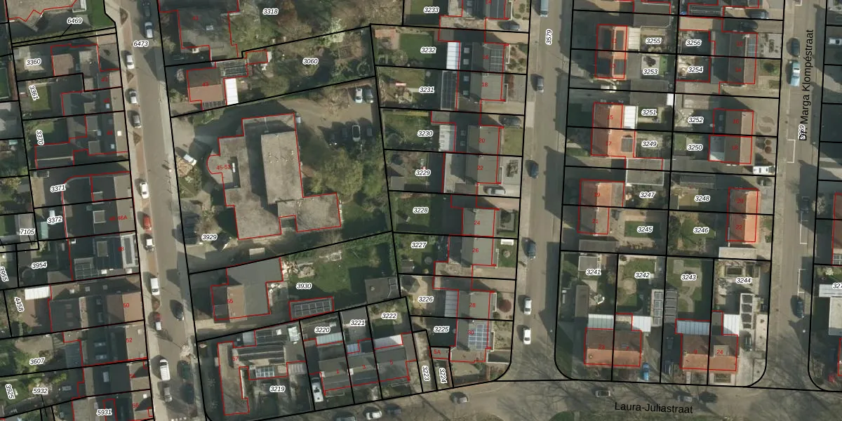 Gebruik de zoekbalk of klik op een perceel om informatie over het perceel te bekijken.