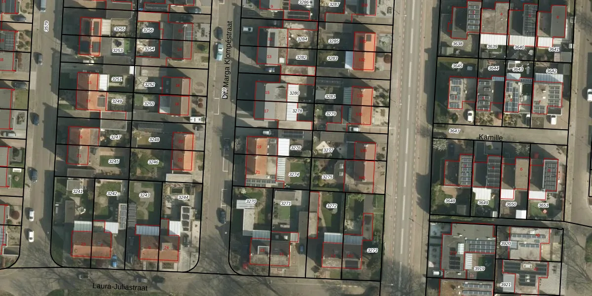 Gebruik de zoekbalk of klik op een perceel om informatie over het perceel te bekijken.