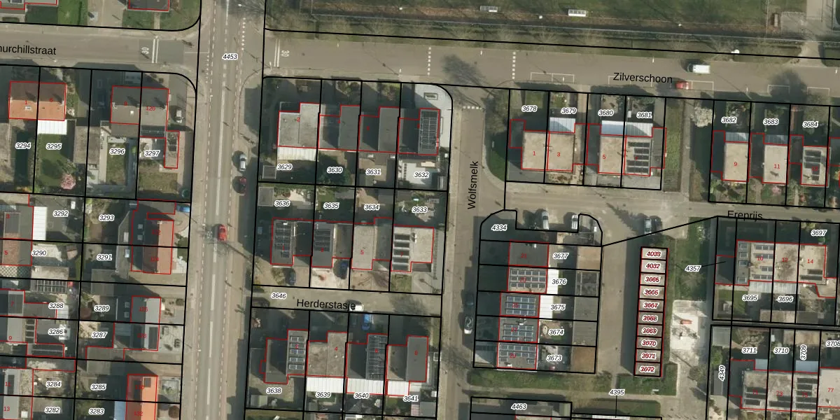 Gebruik de zoekbalk of klik op een perceel om informatie over het perceel te bekijken.