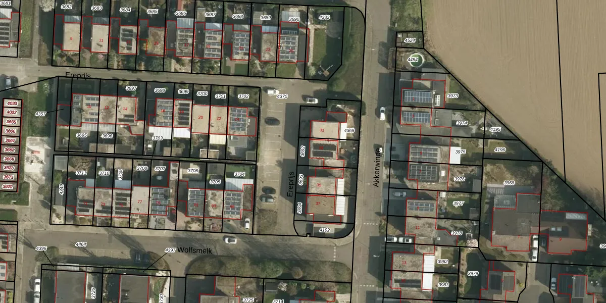 Gebruik de zoekbalk of klik op een perceel om informatie over het perceel te bekijken.