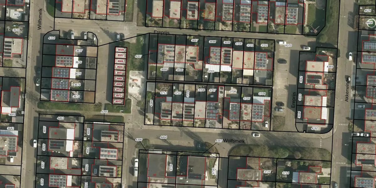 Gebruik de zoekbalk of klik op een perceel om informatie over het perceel te bekijken.