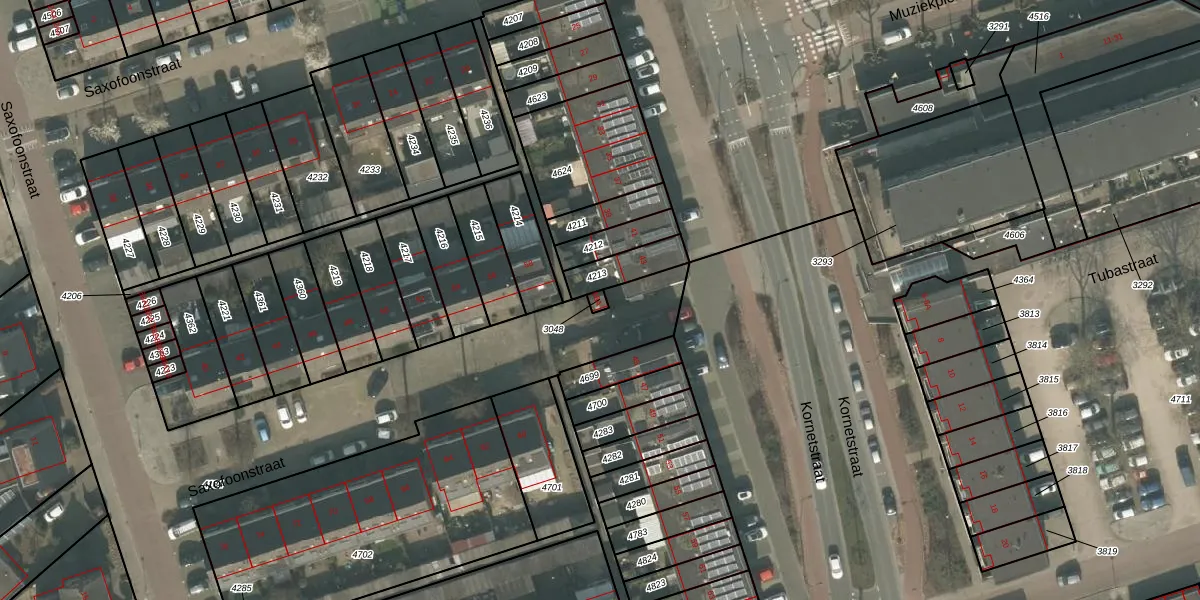 Gebruik de zoekbalk of klik op een perceel om informatie over het perceel te bekijken.