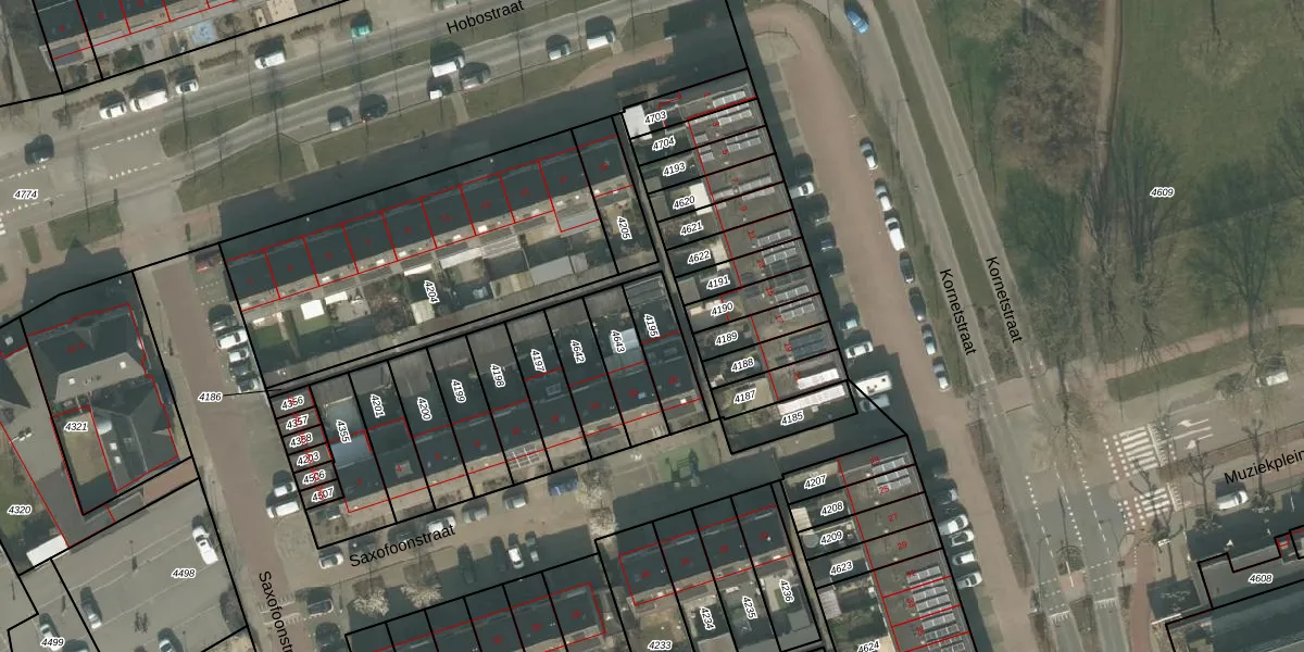 Gebruik de zoekbalk of klik op een perceel om informatie over het perceel te bekijken.