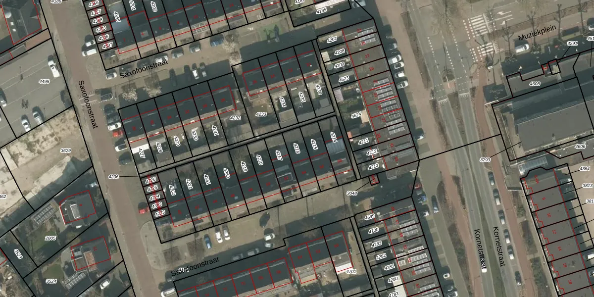Gebruik de zoekbalk of klik op een perceel om informatie over het perceel te bekijken.