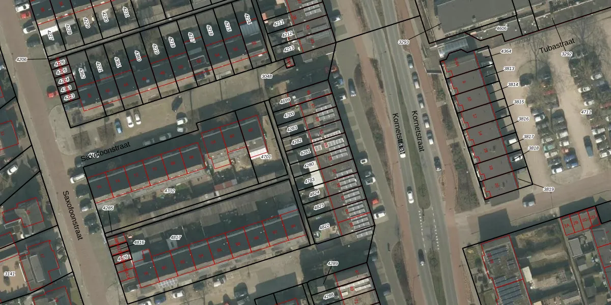 Gebruik de zoekbalk of klik op een perceel om informatie over het perceel te bekijken.