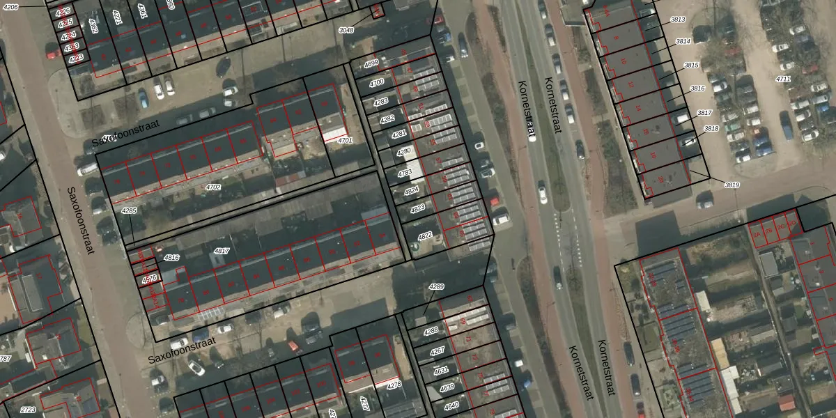 Gebruik de zoekbalk of klik op een perceel om informatie over het perceel te bekijken.