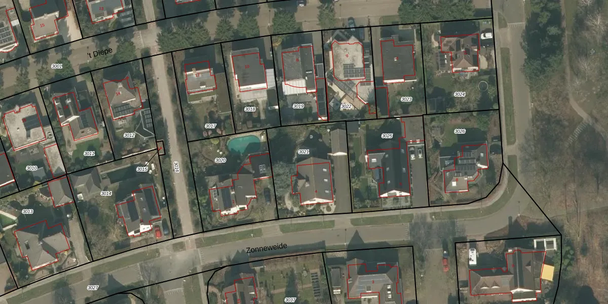 Gebruik de zoekbalk of klik op een perceel om informatie over het perceel te bekijken.