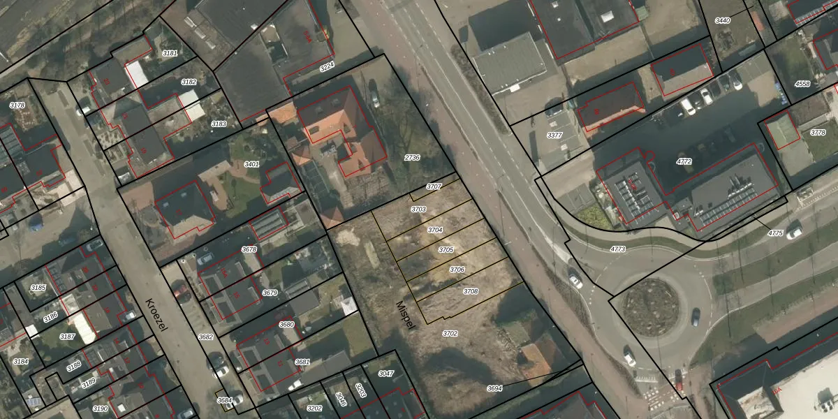 Gebruik de zoekbalk of klik op een perceel om informatie over het perceel te bekijken.