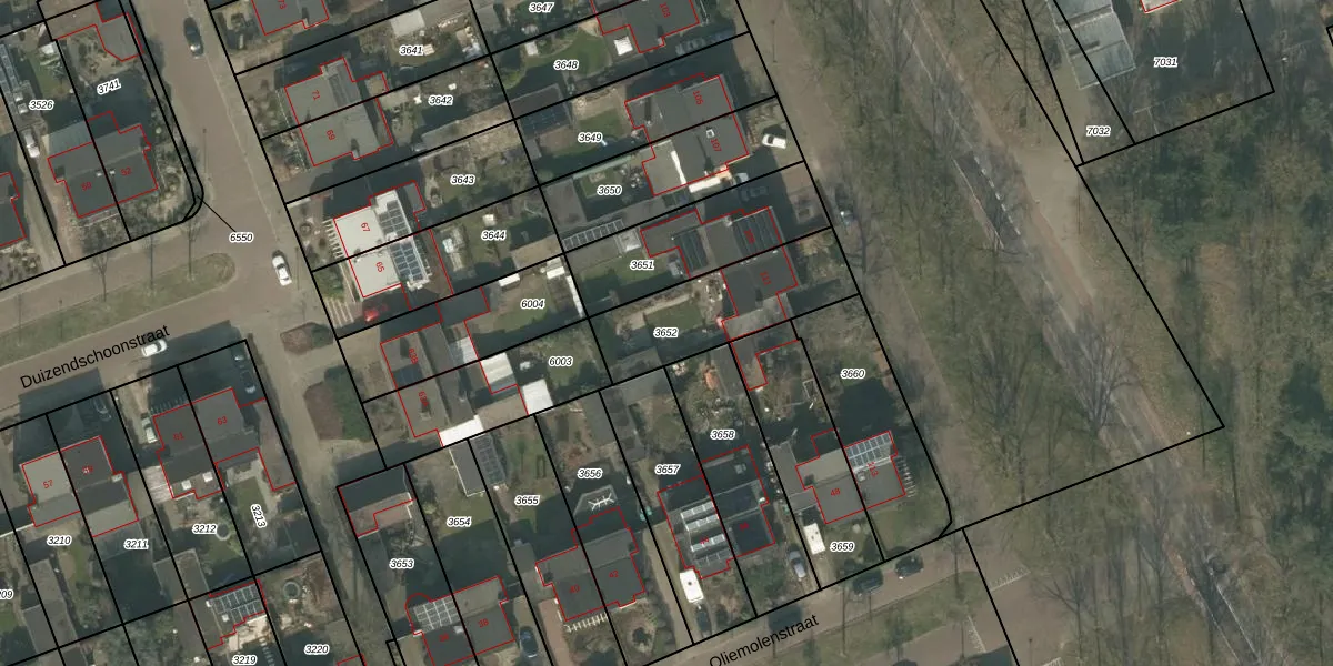 Gebruik de zoekbalk of klik op een perceel om informatie over het perceel te bekijken.