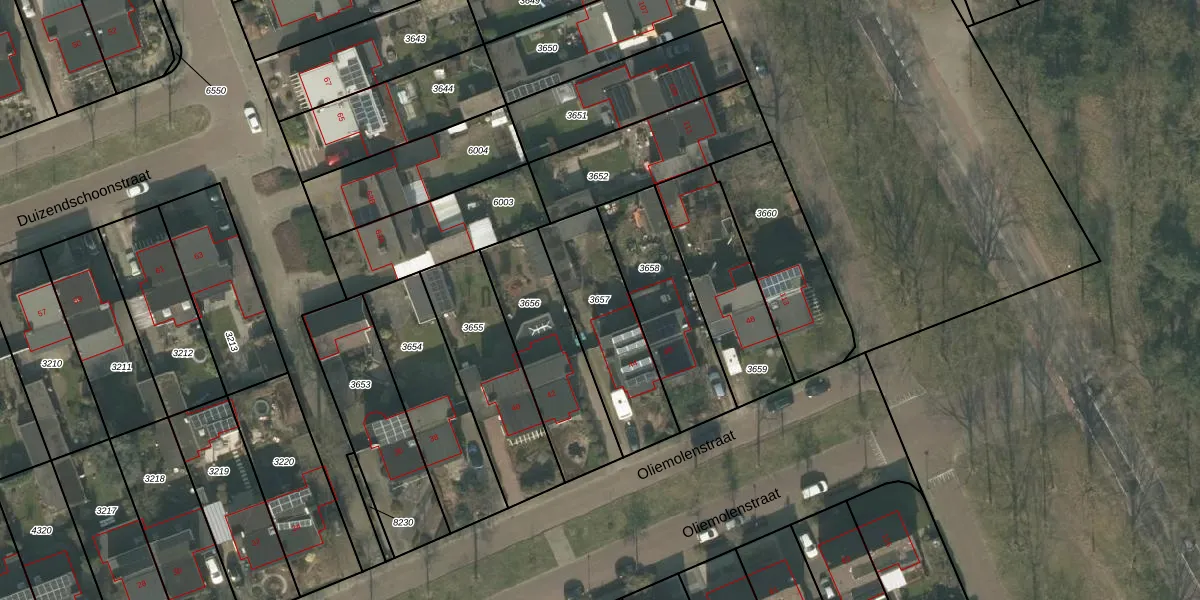 Gebruik de zoekbalk of klik op een perceel om informatie over het perceel te bekijken.