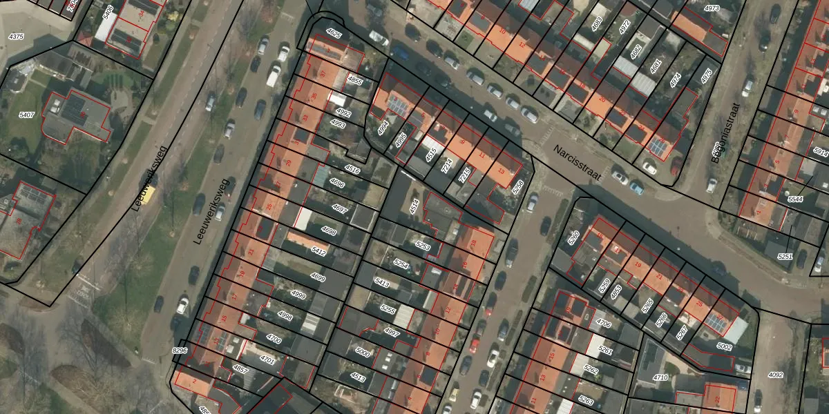 Gebruik de zoekbalk of klik op een perceel om informatie over het perceel te bekijken.