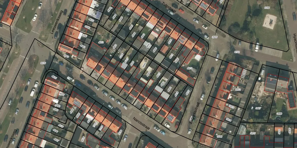 Gebruik de zoekbalk of klik op een perceel om informatie over het perceel te bekijken.