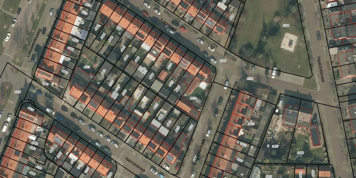 Gebruik de zoekbalk of klik op een perceel om informatie over het perceel te bekijken.