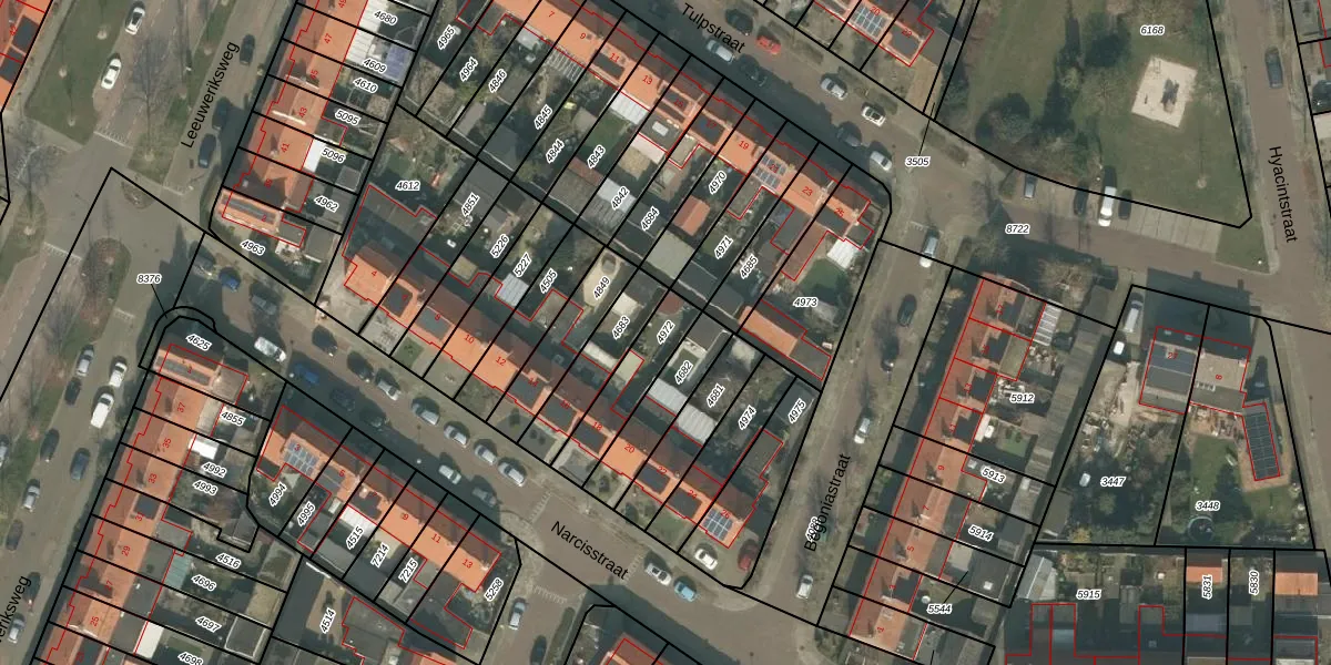 Gebruik de zoekbalk of klik op een perceel om informatie over het perceel te bekijken.