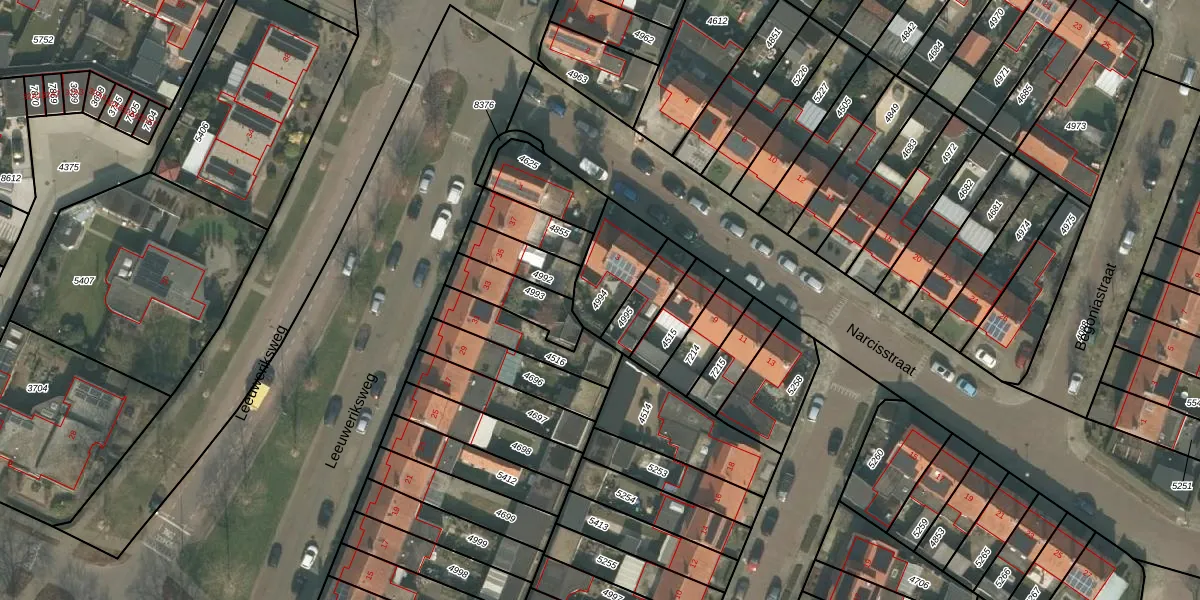 Gebruik de zoekbalk of klik op een perceel om informatie over het perceel te bekijken.