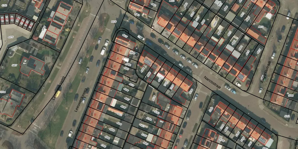 Gebruik de zoekbalk of klik op een perceel om informatie over het perceel te bekijken.