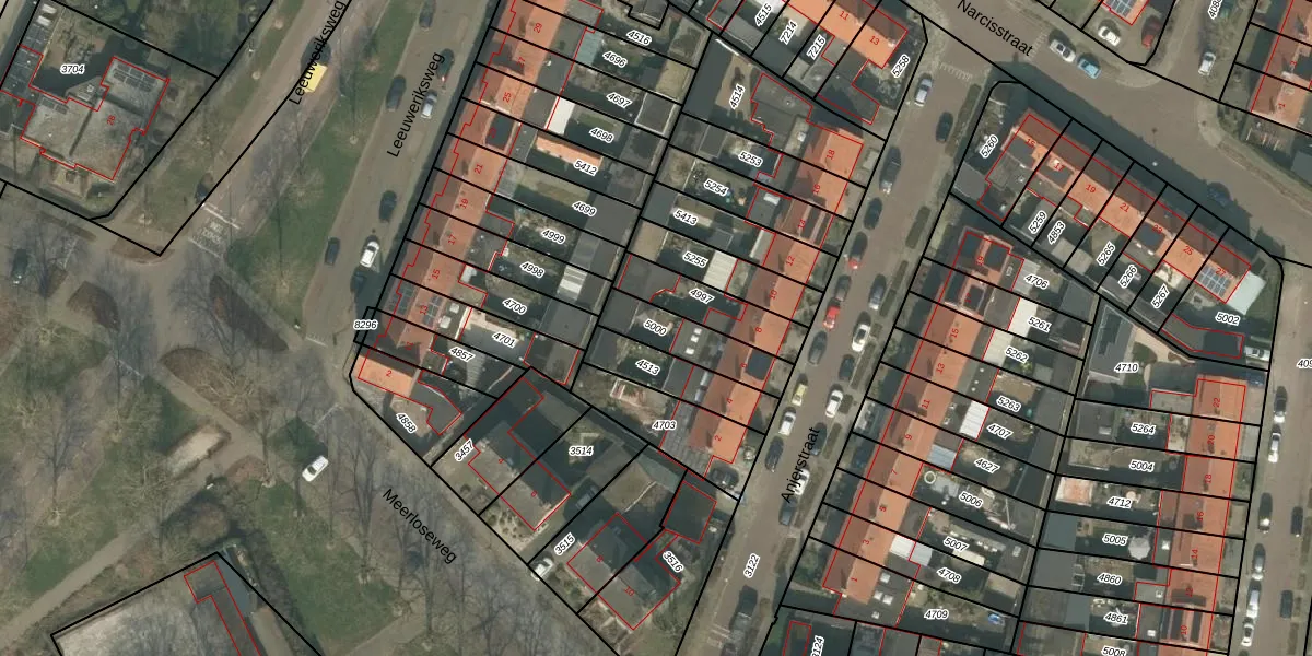 Gebruik de zoekbalk of klik op een perceel om informatie over het perceel te bekijken.
