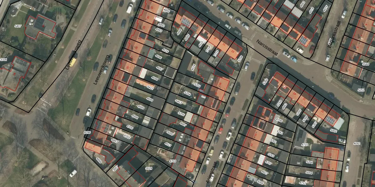 Gebruik de zoekbalk of klik op een perceel om informatie over het perceel te bekijken.