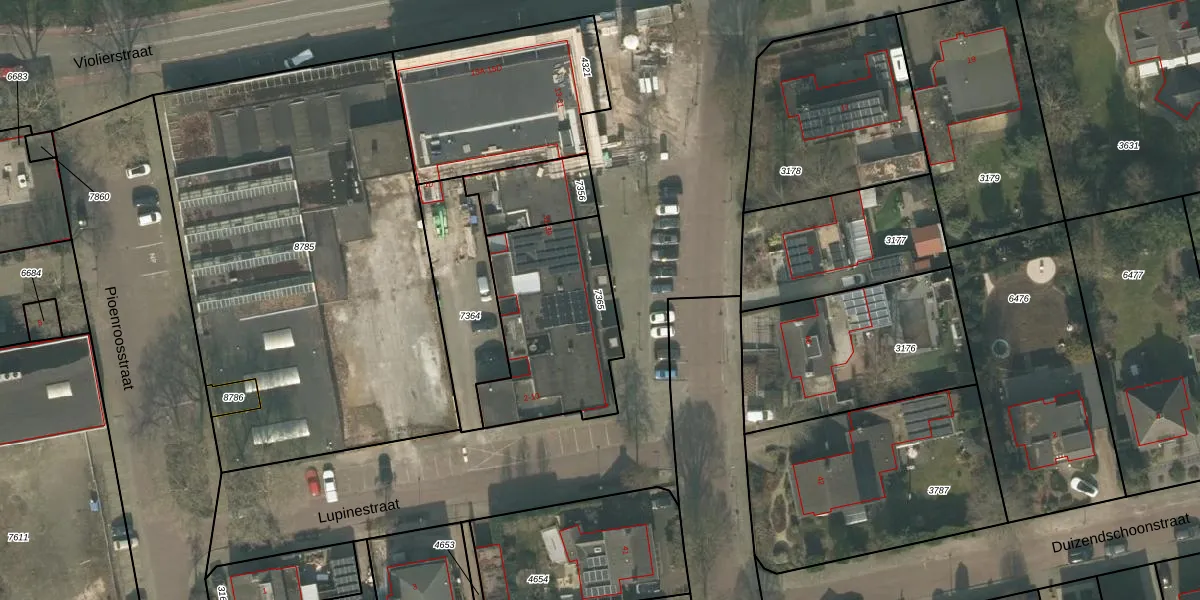 Gebruik de zoekbalk of klik op een perceel om informatie over het perceel te bekijken.