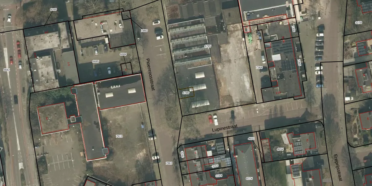 Gebruik de zoekbalk of klik op een perceel om informatie over het perceel te bekijken.