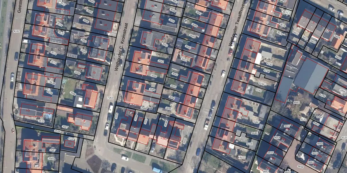 Gebruik de zoekbalk of klik op een perceel om informatie over het perceel te bekijken.