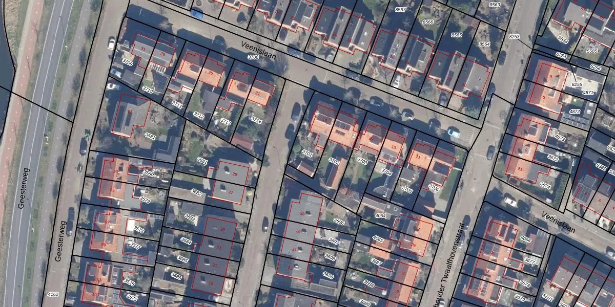 Gebruik de zoekbalk of klik op een perceel om informatie over het perceel te bekijken.