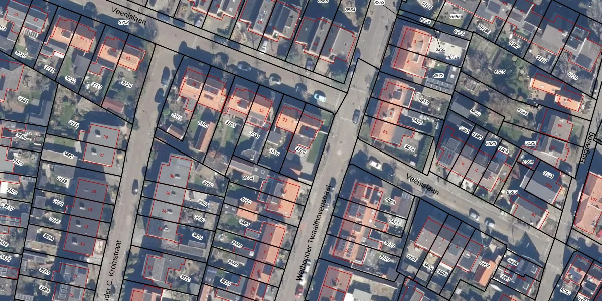 Gebruik de zoekbalk of klik op een perceel om informatie over het perceel te bekijken.