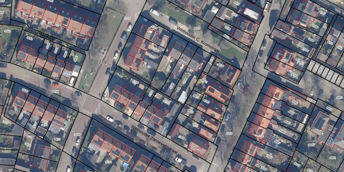 Gebruik de zoekbalk of klik op een perceel om informatie over het perceel te bekijken.