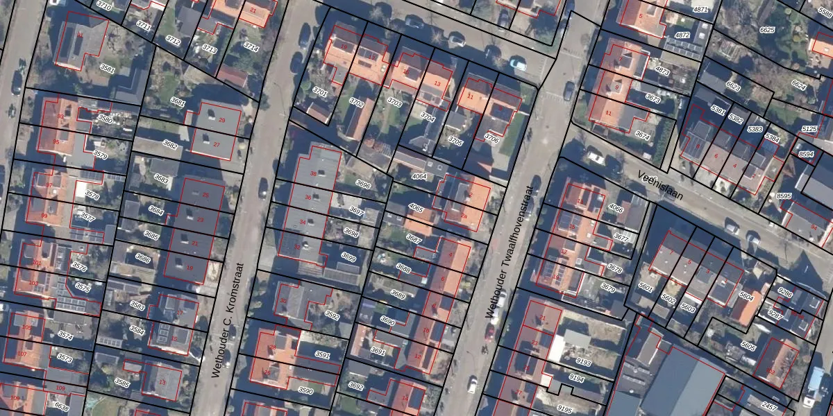 Gebruik de zoekbalk of klik op een perceel om informatie over het perceel te bekijken.