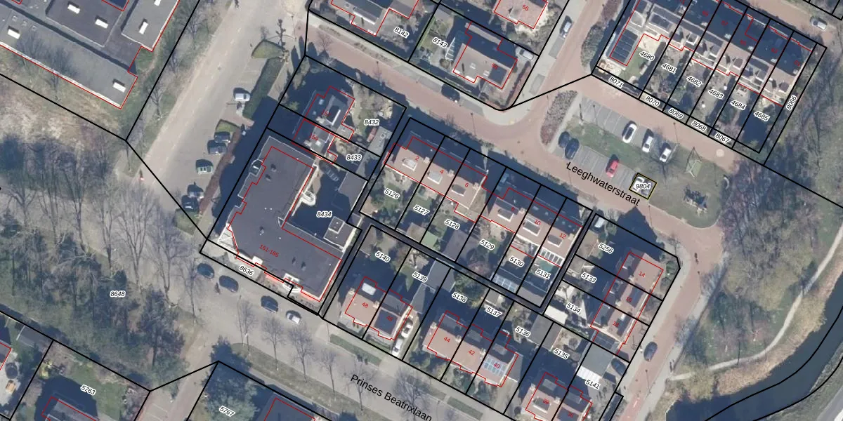Gebruik de zoekbalk of klik op een perceel om informatie over het perceel te bekijken.