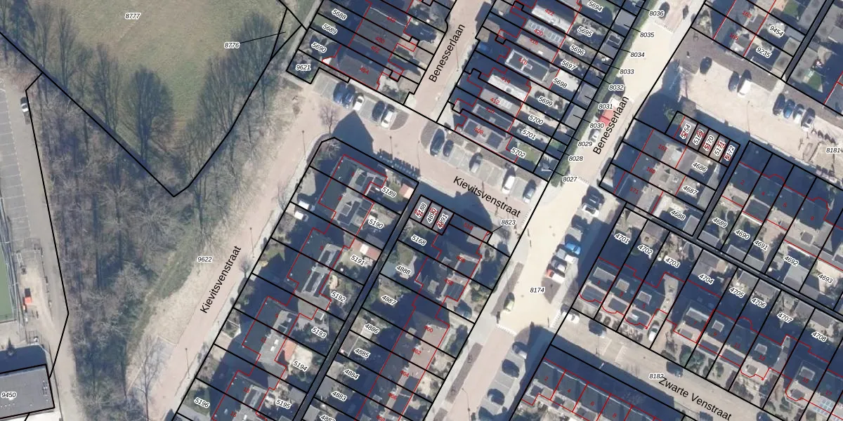 Gebruik de zoekbalk of klik op een perceel om informatie over het perceel te bekijken.
