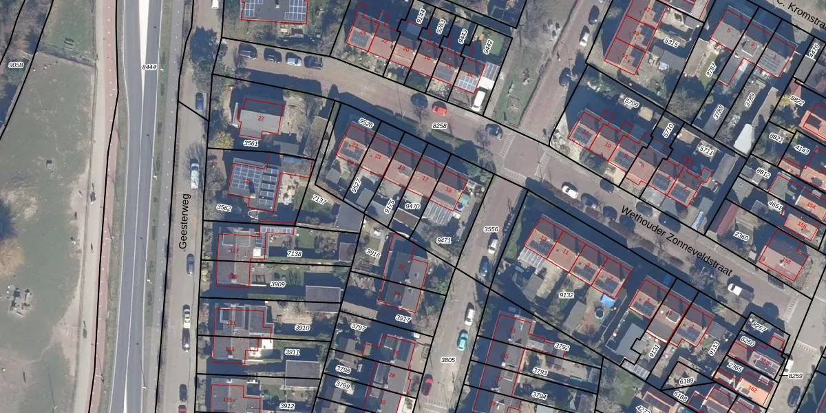 Gebruik de zoekbalk of klik op een perceel om informatie over het perceel te bekijken.