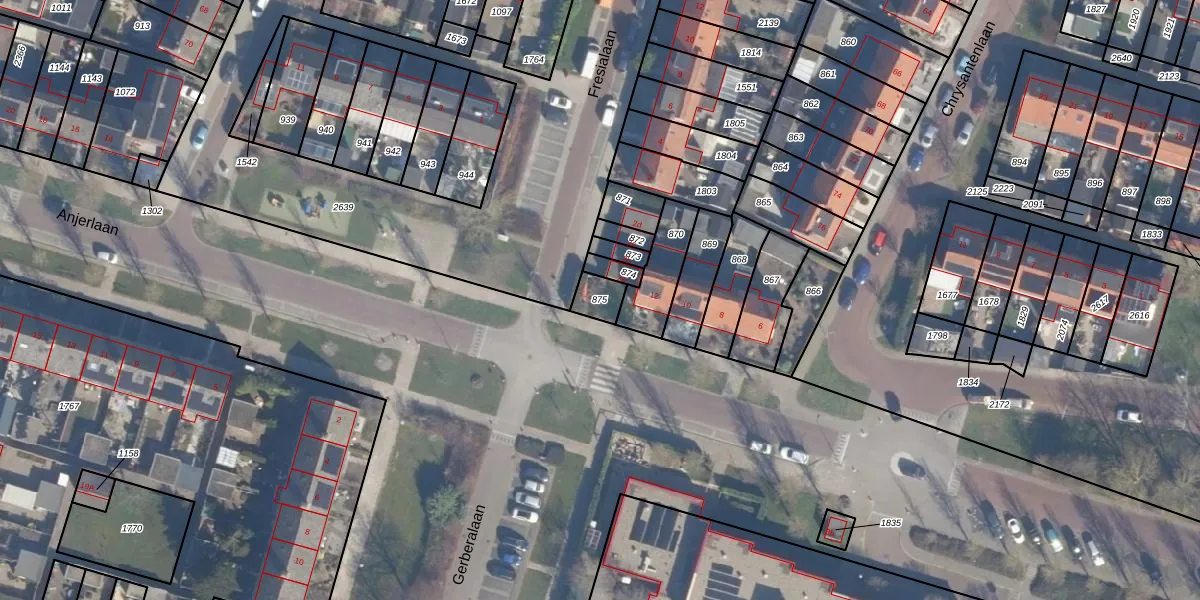 Gebruik de zoekbalk of klik op een perceel om informatie over het perceel te bekijken.