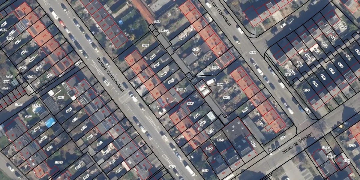 Gebruik de zoekbalk of klik op een perceel om informatie over het perceel te bekijken.