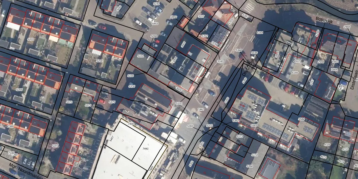 Gebruik de zoekbalk of klik op een perceel om informatie over het perceel te bekijken.