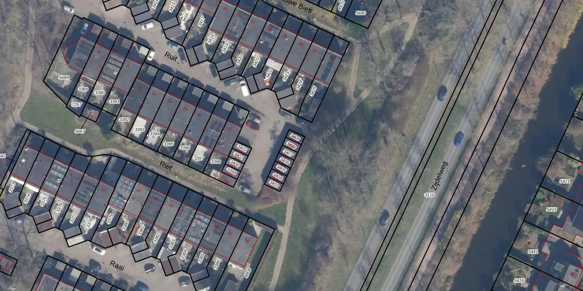 Gebruik de zoekbalk of klik op een perceel om informatie over het perceel te bekijken.