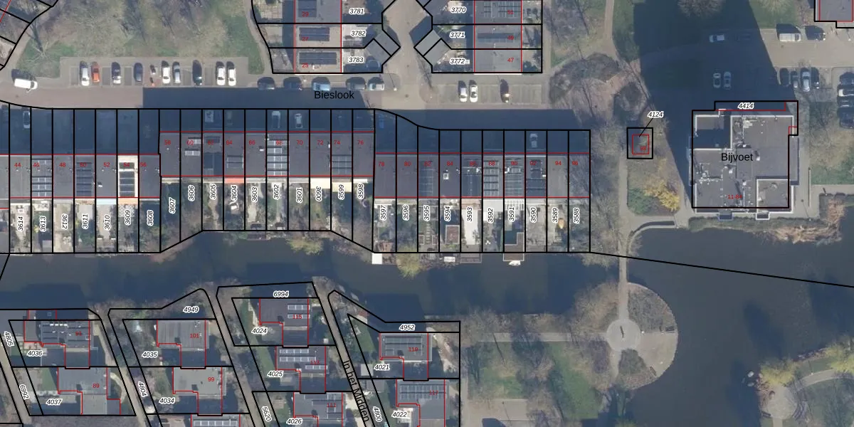 Gebruik de zoekbalk of klik op een perceel om informatie over het perceel te bekijken.