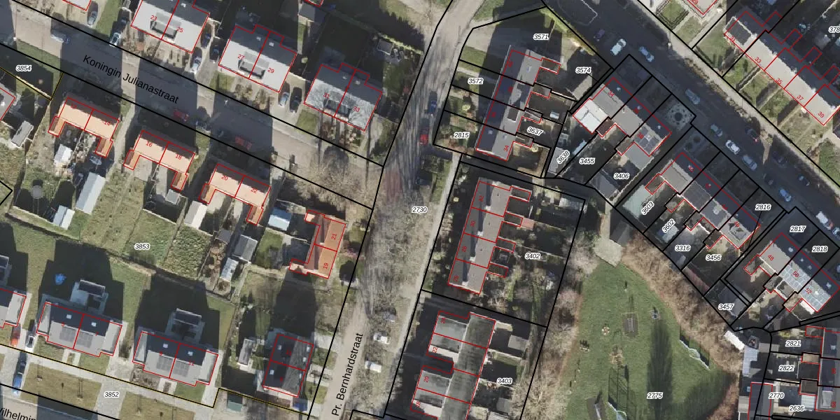 Gebruik de zoekbalk of klik op een perceel om informatie over het perceel te bekijken.