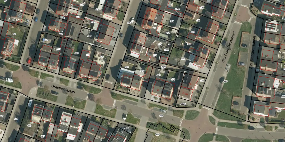 Gebruik de zoekbalk of klik op een perceel om informatie over het perceel te bekijken.