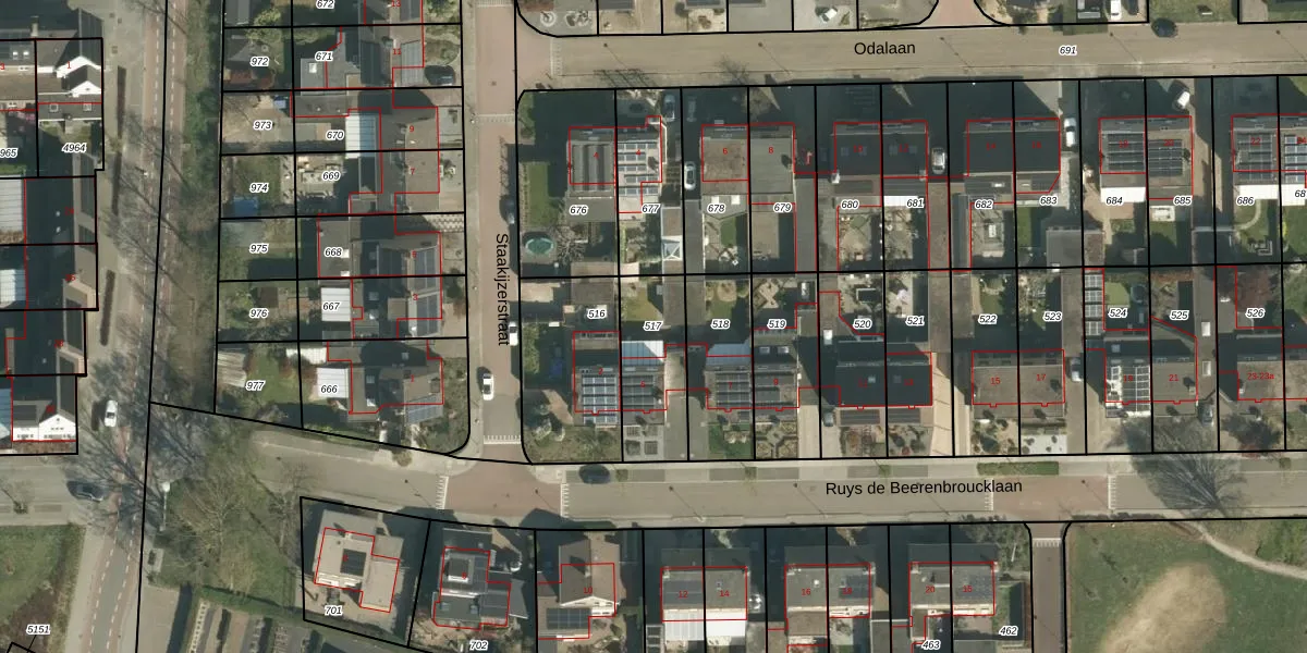 Gebruik de zoekbalk of klik op een perceel om informatie over het perceel te bekijken.