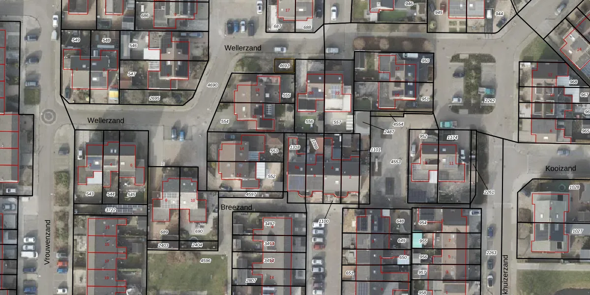 Gebruik de zoekbalk of klik op een perceel om informatie over het perceel te bekijken.