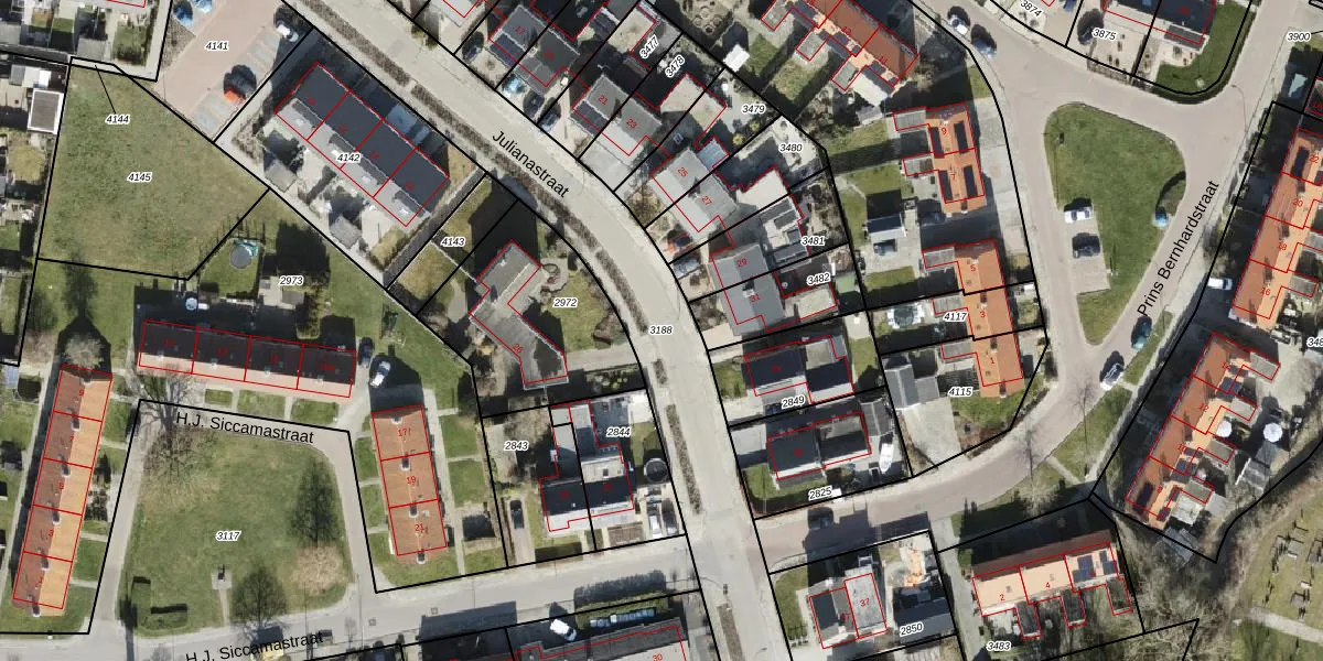 Gebruik de zoekbalk of klik op een perceel om informatie over het perceel te bekijken.