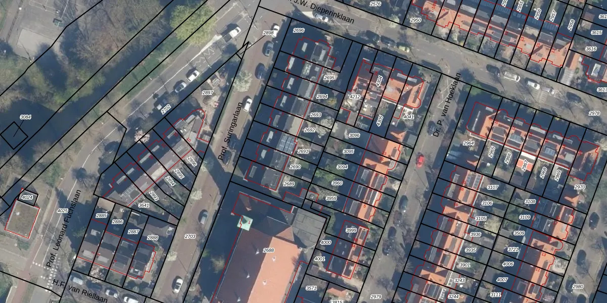 Gebruik de zoekbalk of klik op een perceel om informatie over het perceel te bekijken.