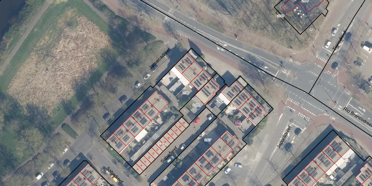 Gebruik de zoekbalk of klik op een perceel om informatie over het perceel te bekijken.