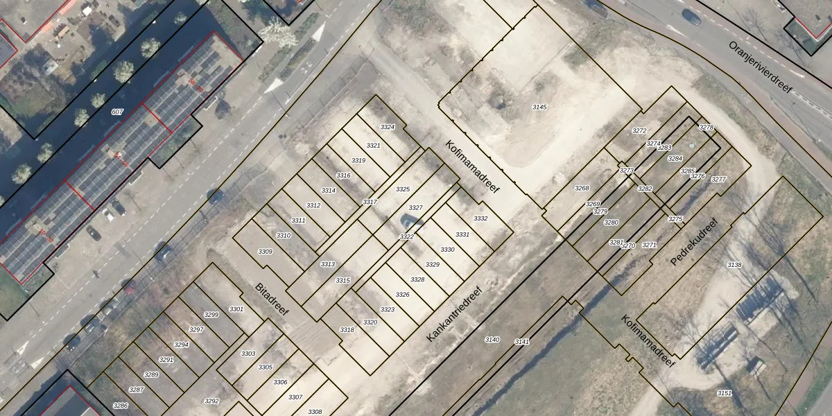 Gebruik de zoekbalk of klik op een perceel om informatie over het perceel te bekijken.