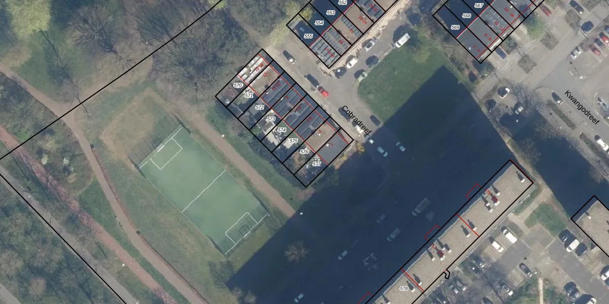 Gebruik de zoekbalk of klik op een perceel om informatie over het perceel te bekijken.