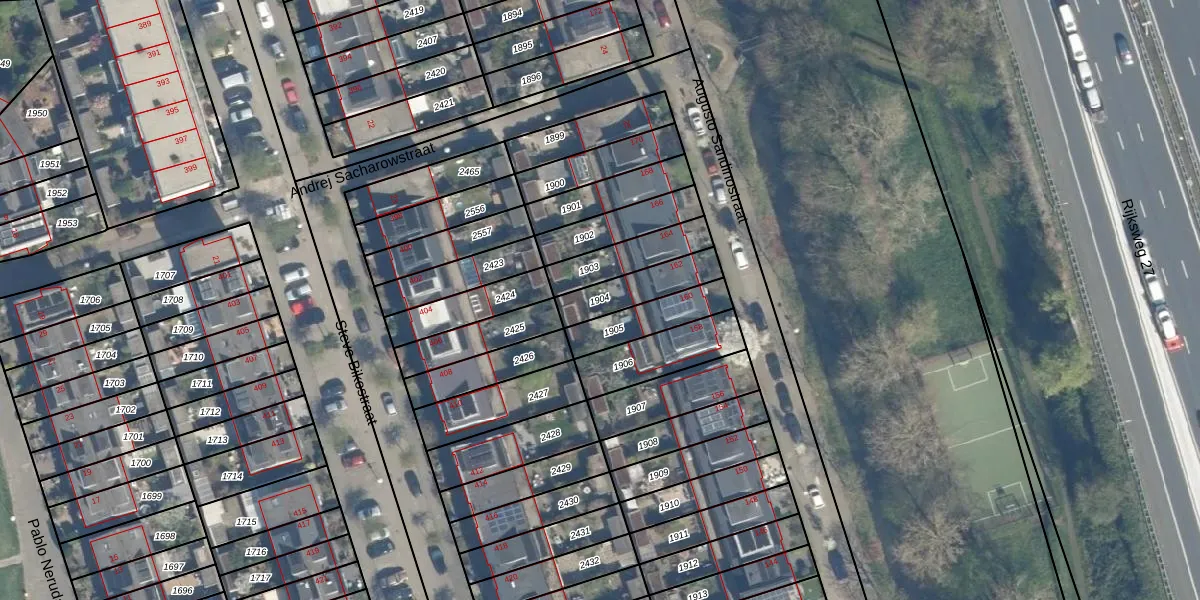 Gebruik de zoekbalk of klik op een perceel om informatie over het perceel te bekijken.